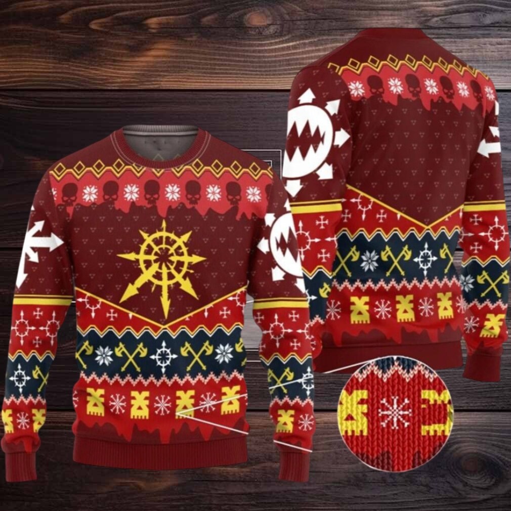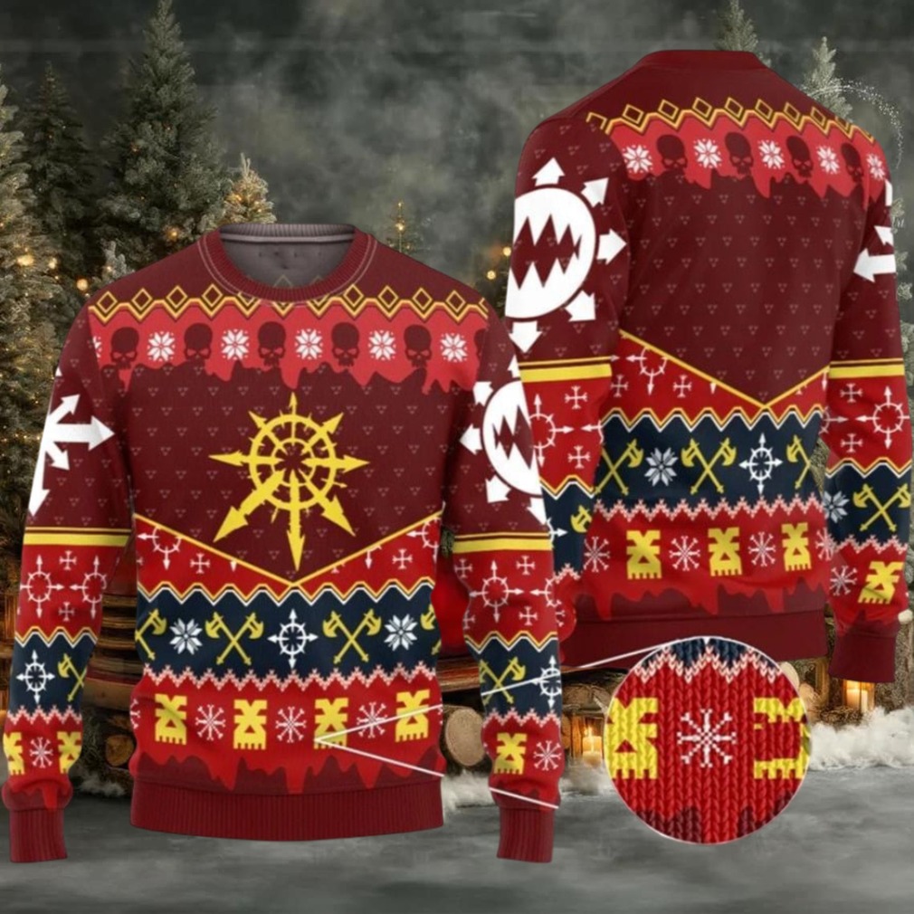 Wear it to your next gaming convention, a Christmas-themed tabletop battle (where you’re playing Chaos, obviously), a family gathering where you need to assert your dominance with a display of chaotic power, or even just while relaxing at home, listening to your favorite metal bands and plotting the downfall of the Imperium. It’s also a fantastic gift for the Warhammer fanatic in your life who deserves something truly metal.