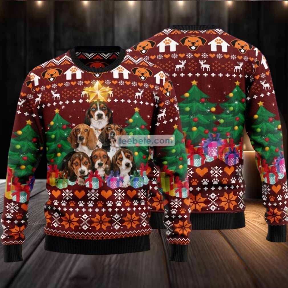 Show off your love for Basset Hounds this Christmas with the ‘Basset Hound And Xmas Tree Ugly Christmas Sweater’! Celebrate Christmas and the love for your Basset Hound with a comfortable sweater. Get ready to turn heads and bring smiles to your holiday celebrations.