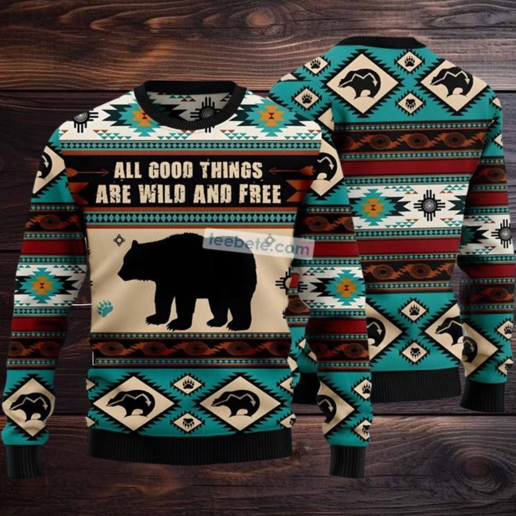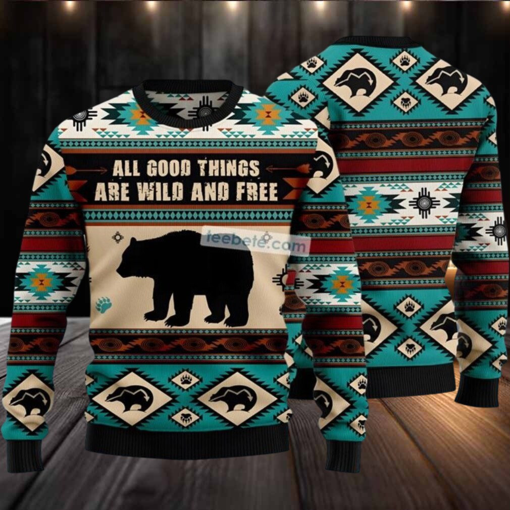 To keep your Bear Wild And Free Ugly Christmas Sweater looking its best, machine wash cold and tumble dry low. This will help maintain the integrity of the knit and keep the colors vibrant for many holiday seasons to come.