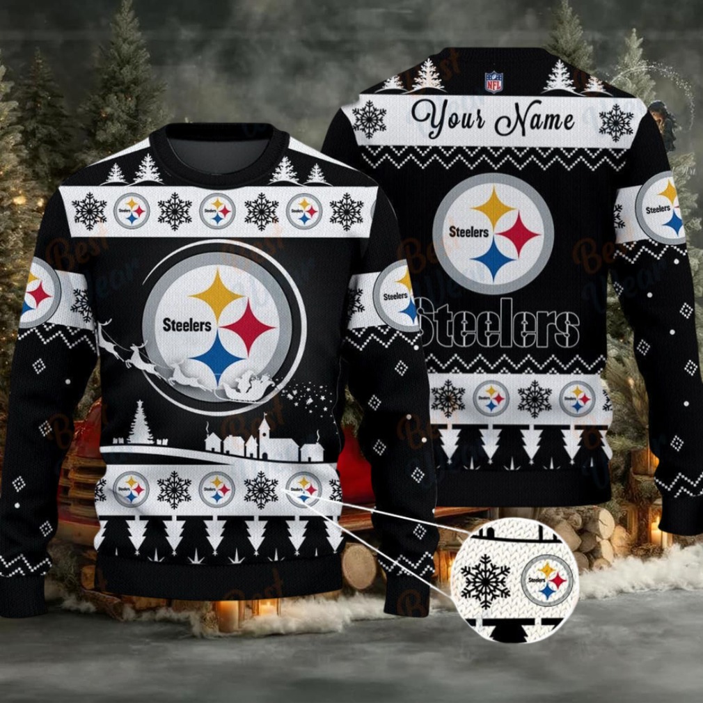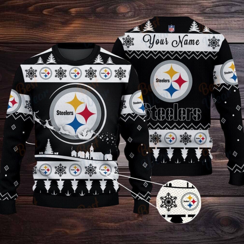 Ever dreamt of repping your team at the holiday party but couldn’t find the right gear? This Black Pittsburgh Steelers NFL Ugly Christmas Sweater lets you shout out your Steelers pride while staying cozy and festive! Imagine showing up to the party with this customized sweater. It is sure to spark conversations and spread holiday cheer (even if your team is winning!).