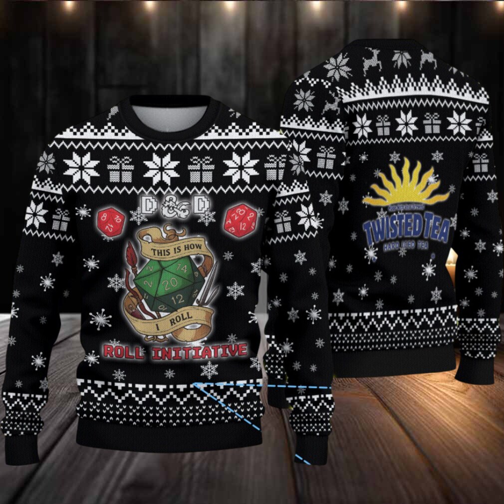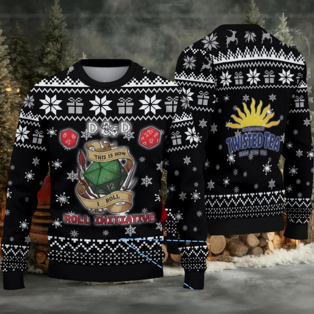 Unleash your inner adventurer this holiday season with the Black Twisted Tea D&D Dice Snowflake Pattern Ugly Sweater! This unique sweater combines the worlds of Twisted Tea, Dungeons & Dragons, and Christmas cheer, making it the perfect conversation starter for any festive occasion. Whether you’re rolling dice with friends or celebrating at a holiday party, this sweater is sure to make a statement. Get ready to embrace your passions and spread some holiday joy with this epic piece of apparel!
