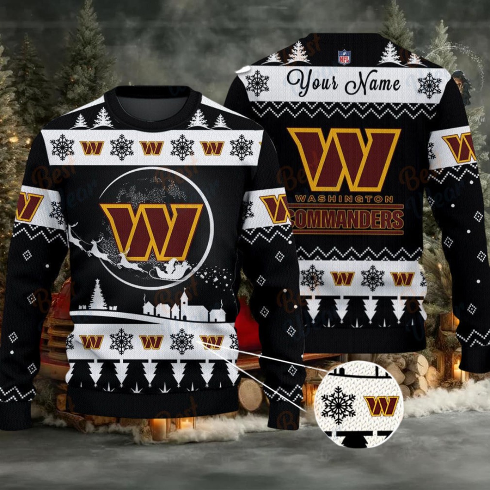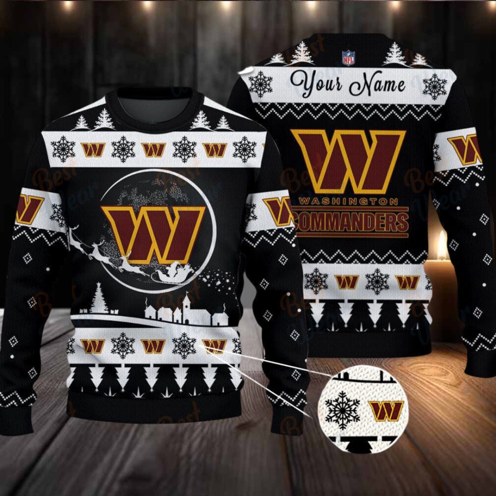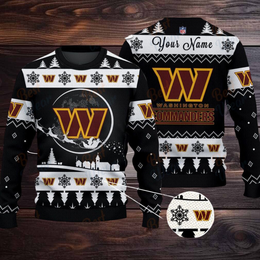 To keep your customized Commanders Christmas sweater looking its best, machine wash cold, inside out, with like colors. Tumble dry low. This will help maintain the vibrancy of the colors and the integrity of the personalized name, ensuring it remains a cherished part of your Commanders fandom for many holidays to come. Hail to the Commanders!