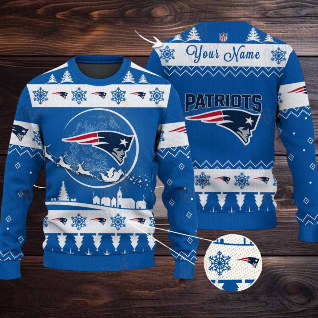This sweater is custom-designed for the ultimate New England Patriots devotee. From dedicated season ticket holders to casual fans who love to represent their team, this sweater is a must-have addition to any Patriots wardrobe. Wear it to holiday parties, game-day gatherings, or even as a festive and spirited office outfit. It’s also an excellent gift idea for birthdays, anniversaries, or any special occasion.