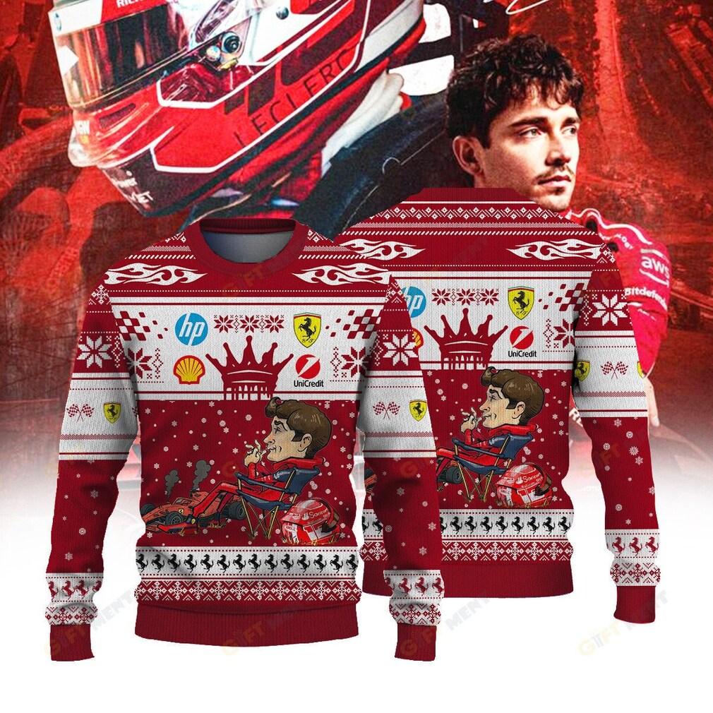 Who Rocks This Best With Charles Leclerc Ferrari Spirit Ugly Christmas Sweater 2025 Edition