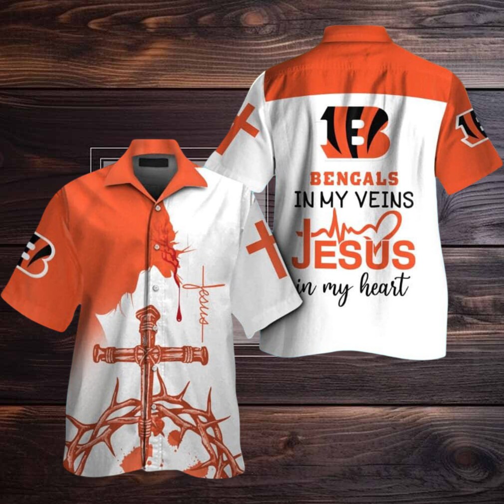 Imagine game day in Cincinnati, the Jungle rocking with energy, and your Bengals pride shining bright. This “Cincinnati Bengals In My Veins Jesus In My Heart” Hawaiian shirt perfectly blends your love for the team with your faith. It’s a unique and meaningful way to represent what’s most important to you, whether you’re at Paul Brown Stadium or simply sharing your passions with the world.