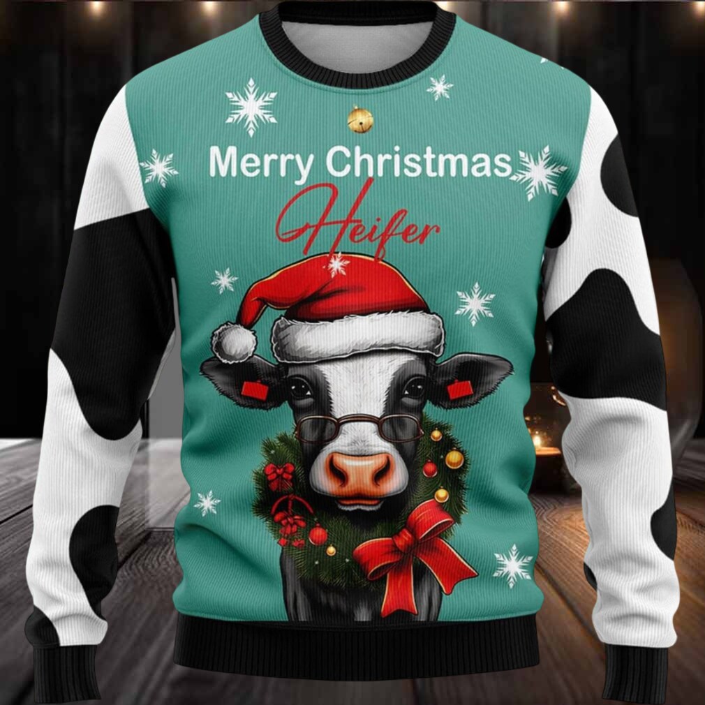 Are you a fan of cows? If you love cows, then this is the Christmas sweater for you! This “Cow Merry Christmas Heifer” Ugly Christmas Sweater combines your love for cows into one festive package. Get ready to make a statement that’s both hilarious and undeniably true.