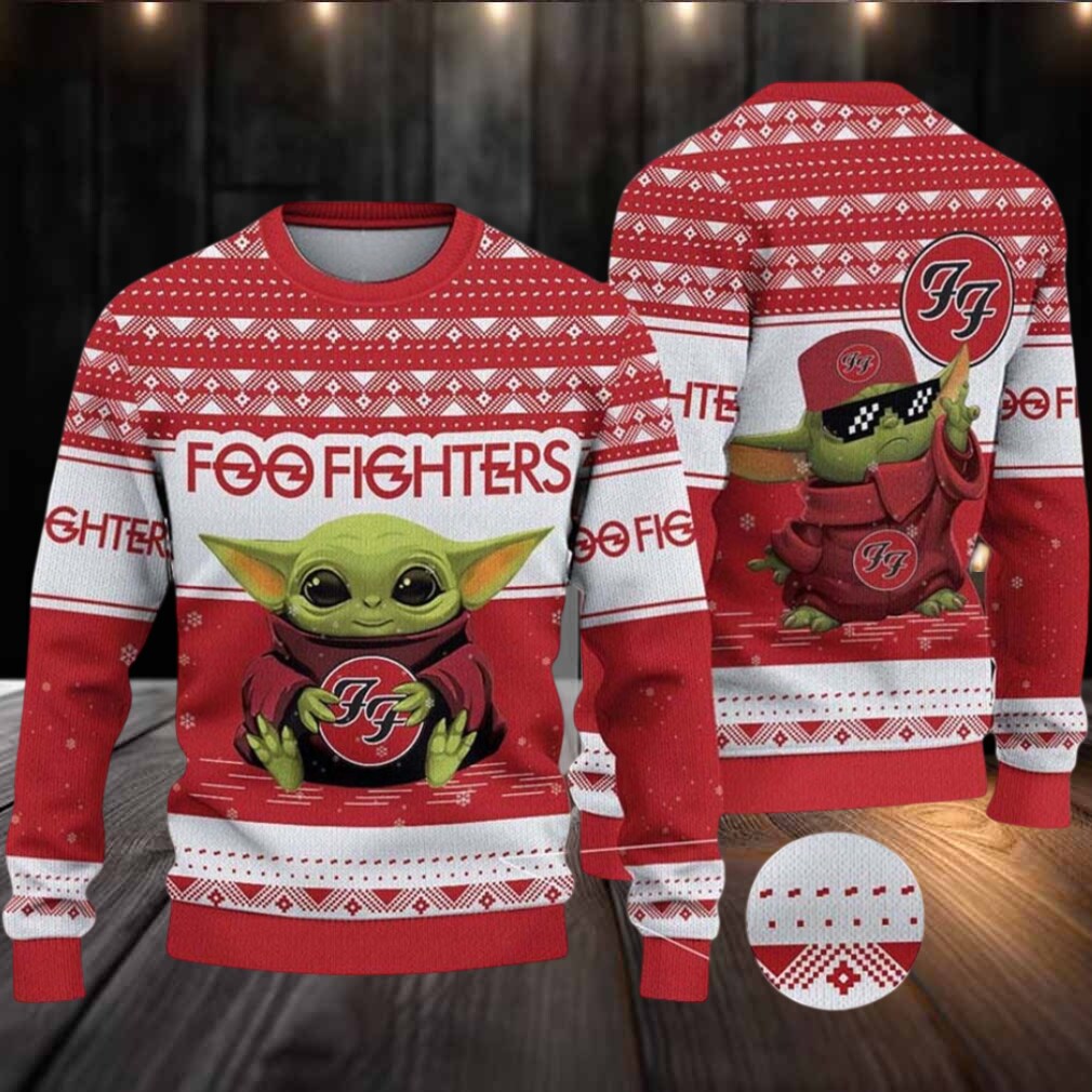 Combine your love for rock and the force with this Foo Fighters Baby Yoda Ugly Christmas Sweater! This unique sweater features Baby Yoda rocking out with the Foo Fighters logo. Guaranteed to be a hit at any holiday party, it’s the perfect gift for fans of both Star Wars and Foo Fighters!