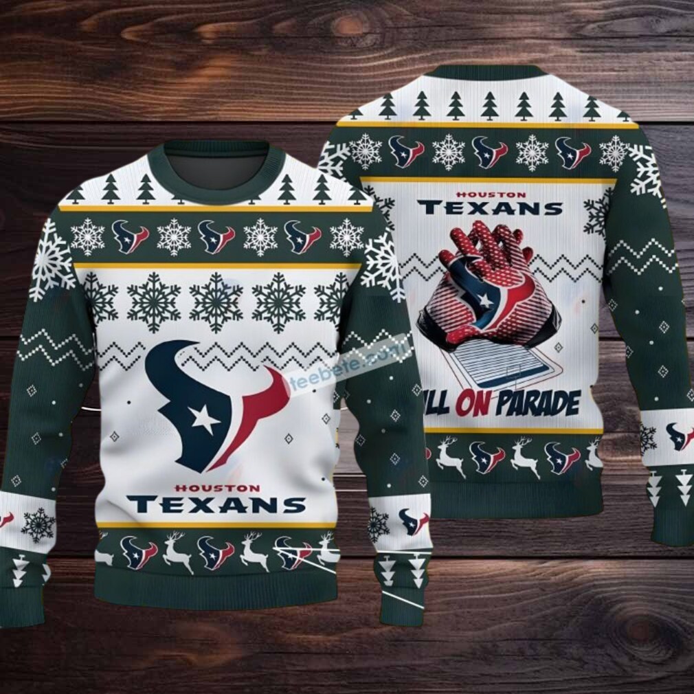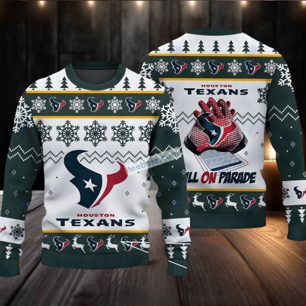 This Houston Texans Ugly Christmas Sweater combines team spirit with holiday cheer, featuring a “Bulls On Parade” theme in classic green and white. Made from a soft, comfortable knit, this sweater will keep you warm and stylish all season long. Available in men’s sizes, it’s the perfect way to show your support for the Texans during the holidays.