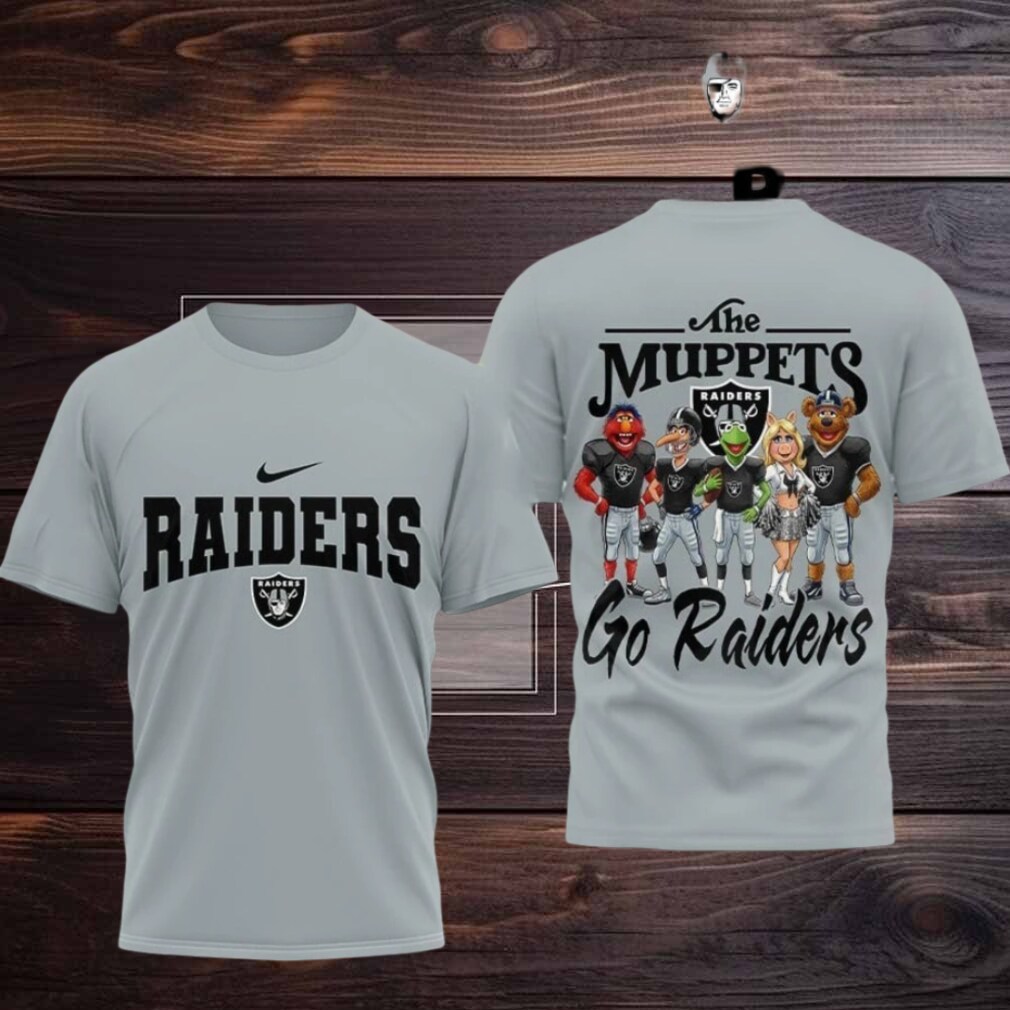 Show your support for the Las Vegas Raiders with a touch of Muppet magic! This shirt features your favorite Muppets celebrating the Raiders, making it a unique and fun addition to any fan’s collection. Perfect for game days or casual wear.