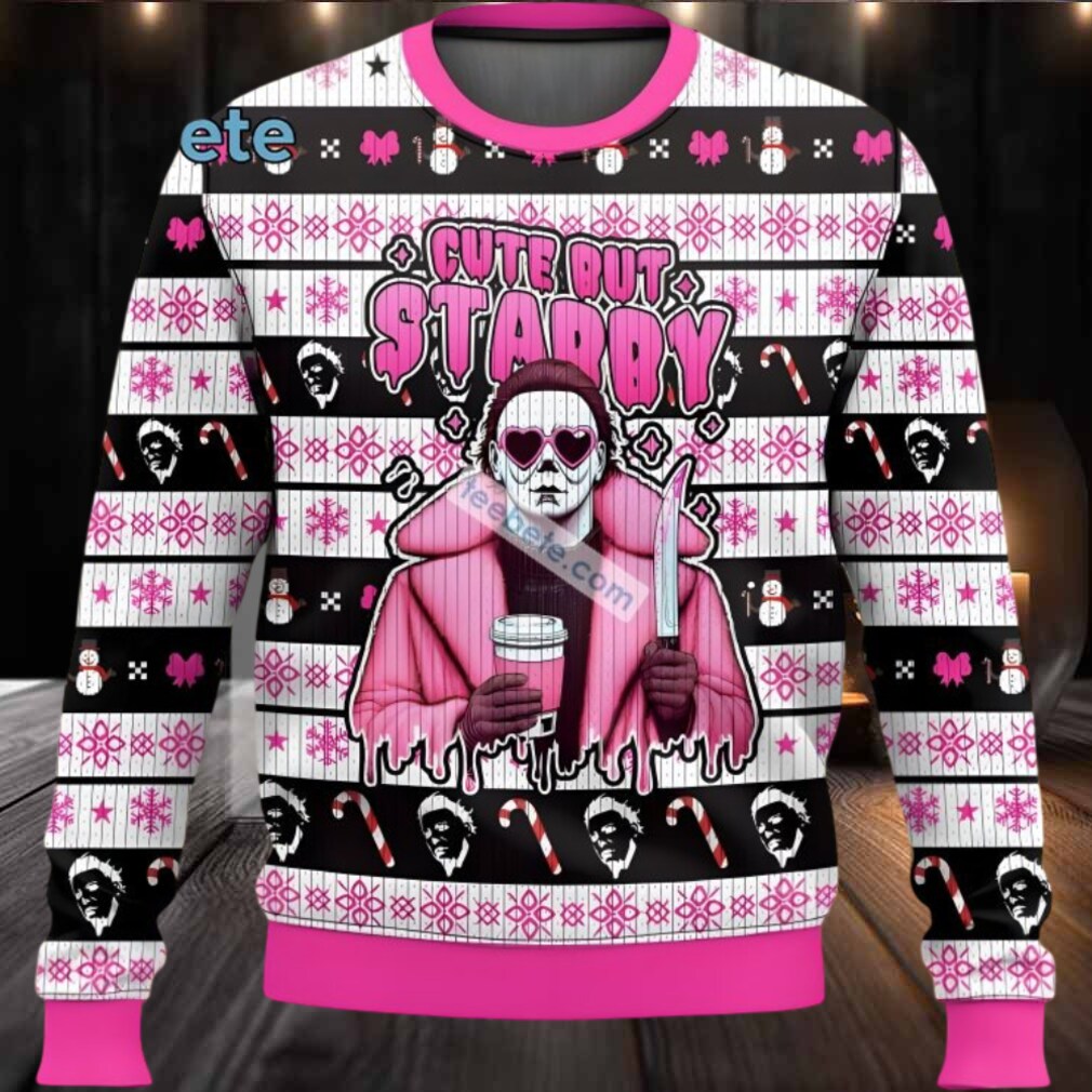 Looking for a killer couples’ outfit this Christmas? This Michael Myers “Cute But Stabby” Ugly Christmas Sweater is perfect for horror-loving couples with a playful side. Stand out at any holiday party with this unique red, black, and pink sweater that screams, “We’re cute, but don’t mess with us!”