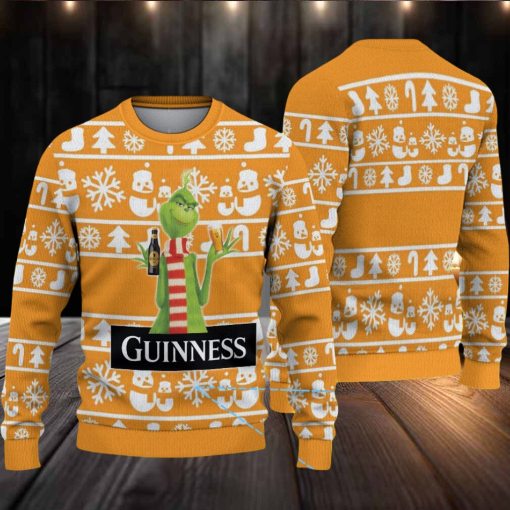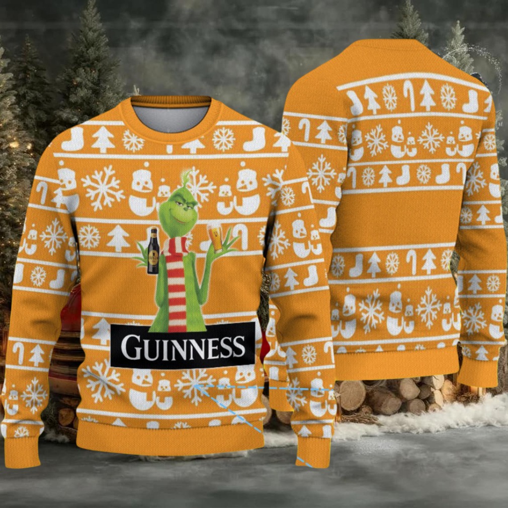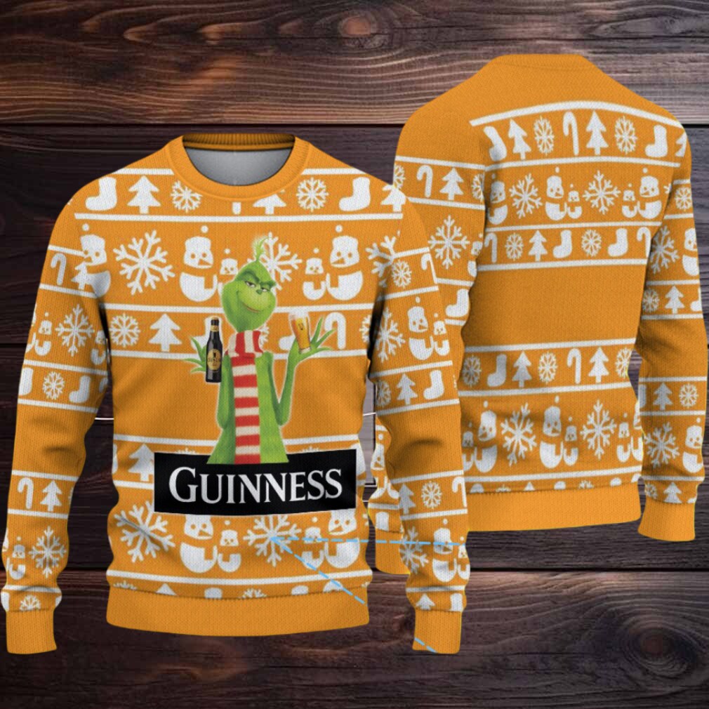 Show off your love for Guinness and the holiday season with this Mustard Orange Christmas Icons Stripe Guinness Beer Ugly Christmas Sweater! It’s the perfect way to add some festive fun to any gathering and celebrate in unique style.