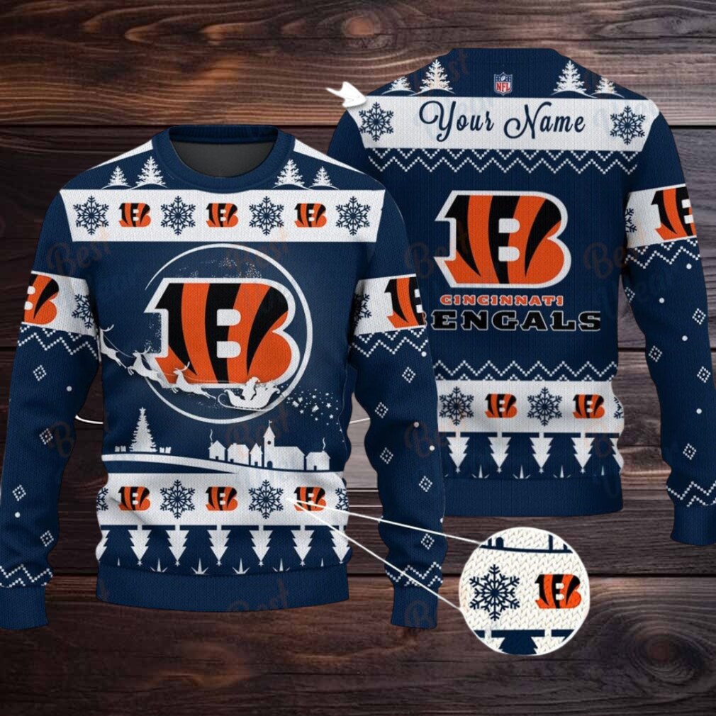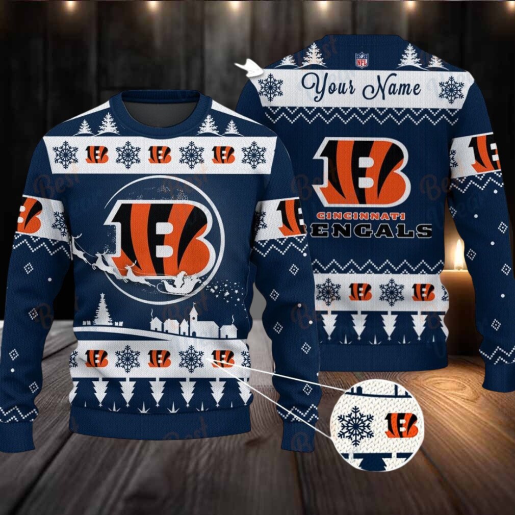 Who Dey think gonna rock the holidays? You, in this Navy Cincinnati Bengals NFL Ugly Christmas Sweater! Imagine the roar of the crowd, now imagine it’s caroling! This personalized sweater lets you celebrate your team and the season in one fell swoop.