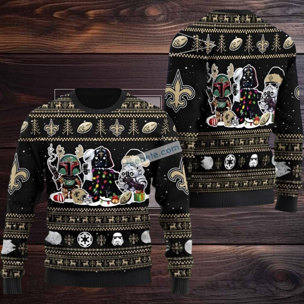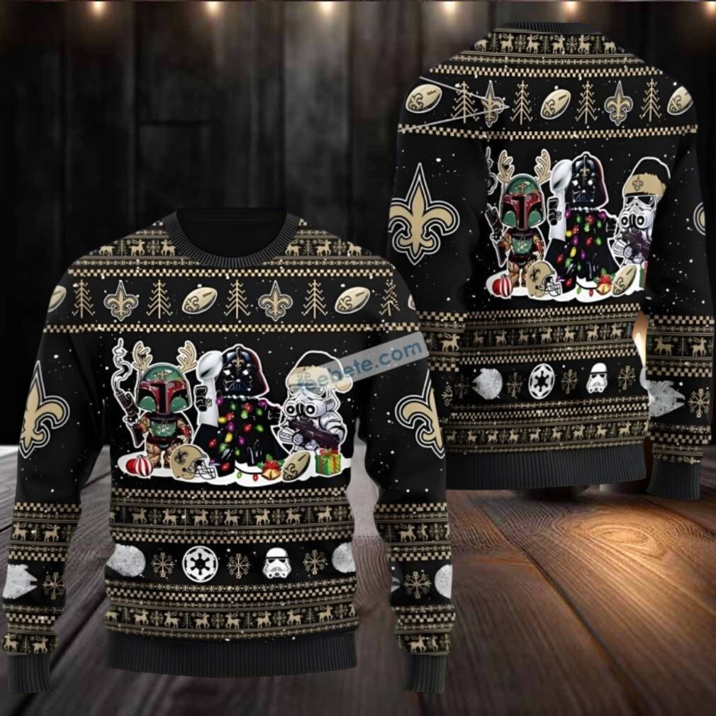 The Force is strong with this one, Who Dat Nation! Get ready to conquer the ugly sweater contest with this New Orleans Saints Star Wars Darth Vader Ugly Christmas Sweater. Imagine the looks you’ll get at your next holiday party when you show up rocking Darth Vader in Saints colors – it’s the ultimate mashup for any fan. Perfect for any Saints and Star Wars aficionado who wants to spread some holiday cheer (and maybe a little bit of dark side dominance) wherever they go.