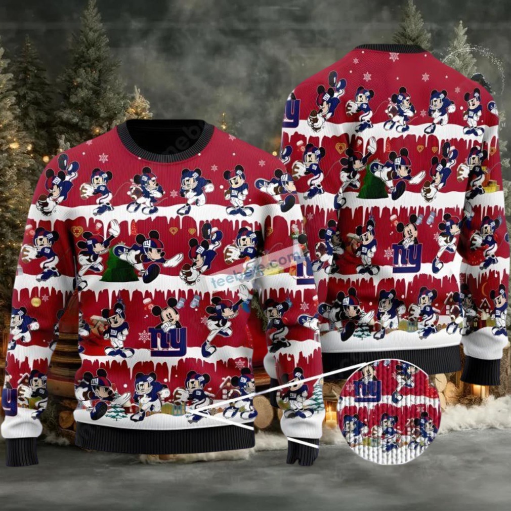 Get ready to celebrate the holidays with a touch of Disney magic and Giants pride! This red, funny, and festive New York Giants Mickey Mouse ugly Christmas sweater is the perfect way to light up any holiday party and show off your fandom in style.