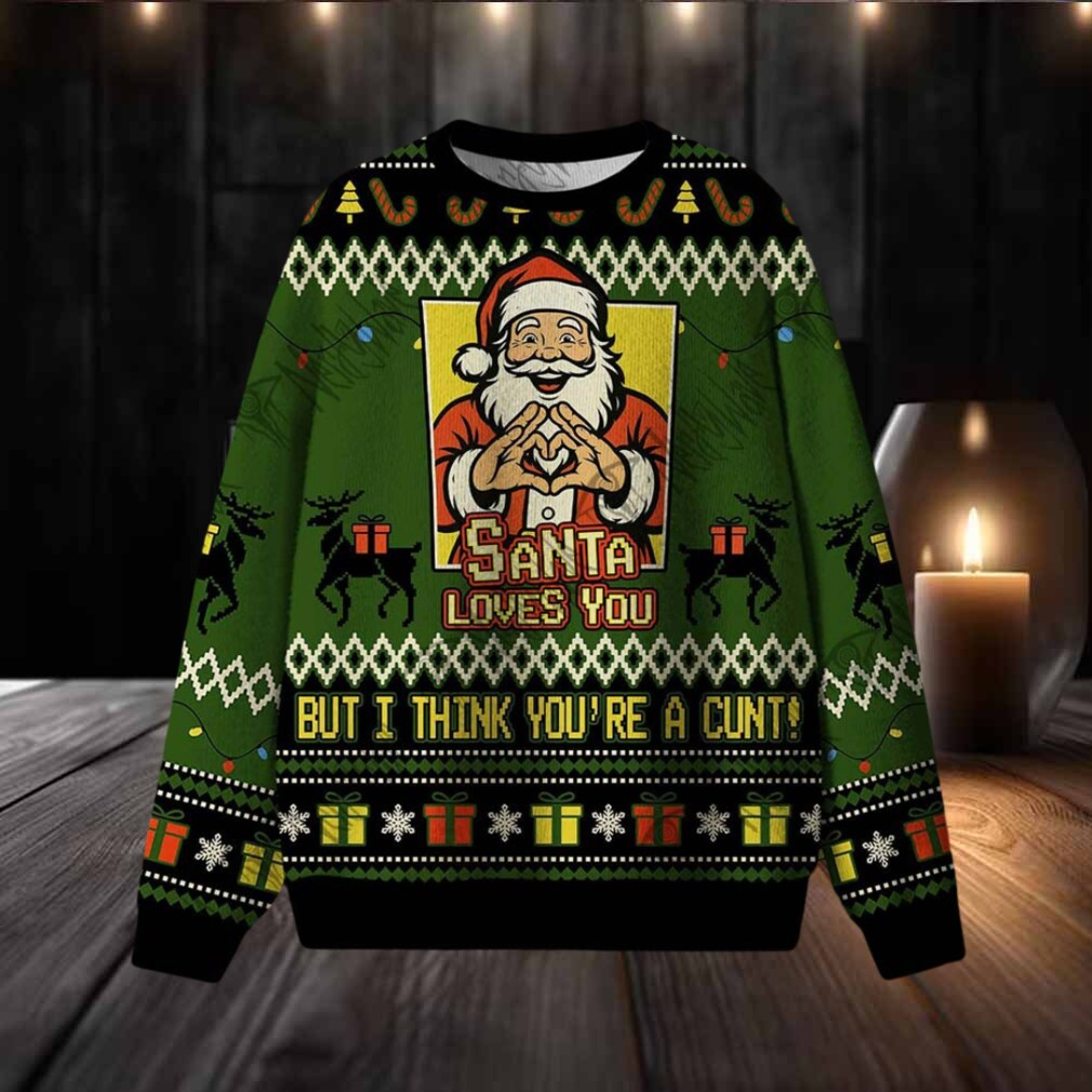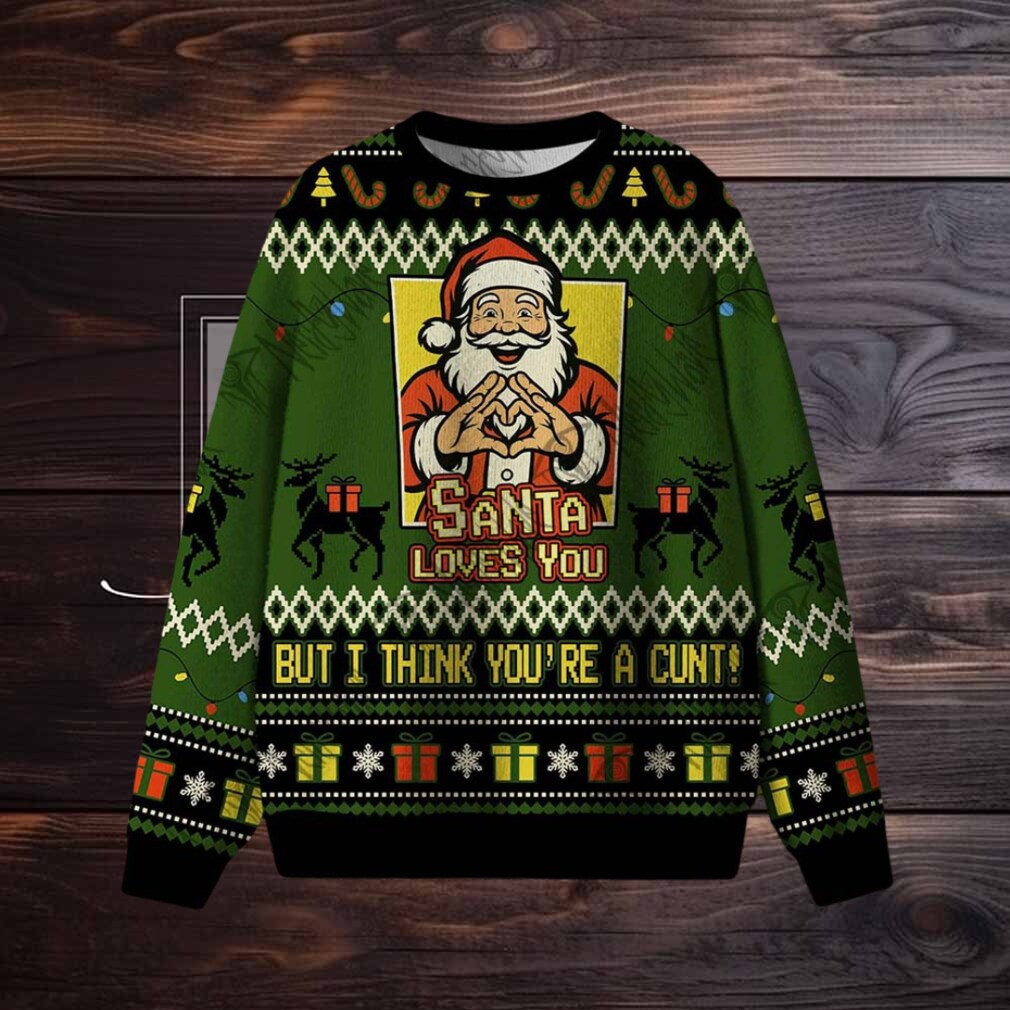 Spread some Christmas cheer with a twist! This Santa Loves You Ugly Sweatshirt is perfect for those who want to show their love for the holidays with a bit of humor. Forget the traditional reindeer and snowmen; this sweatshirt is all about Santa showing some love.