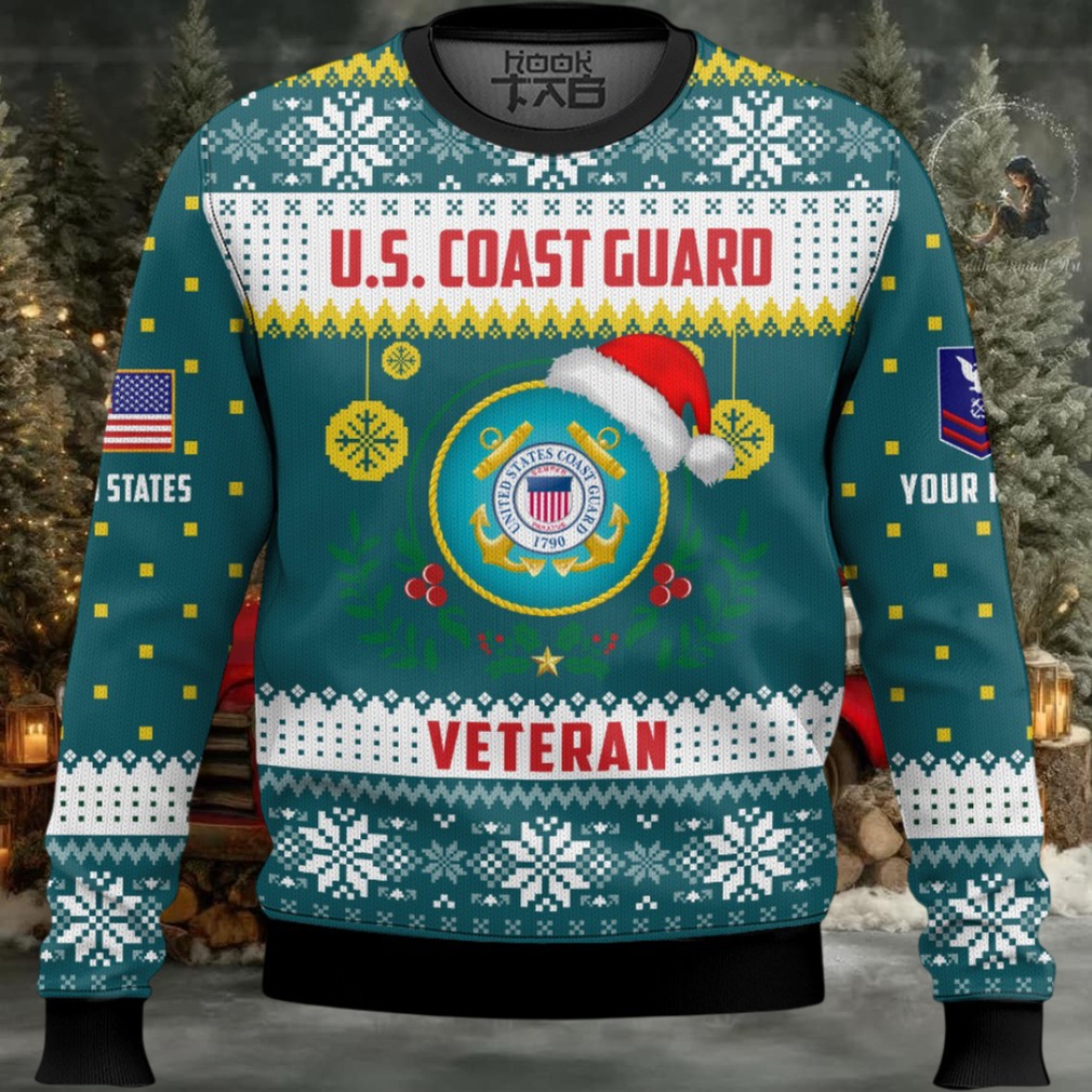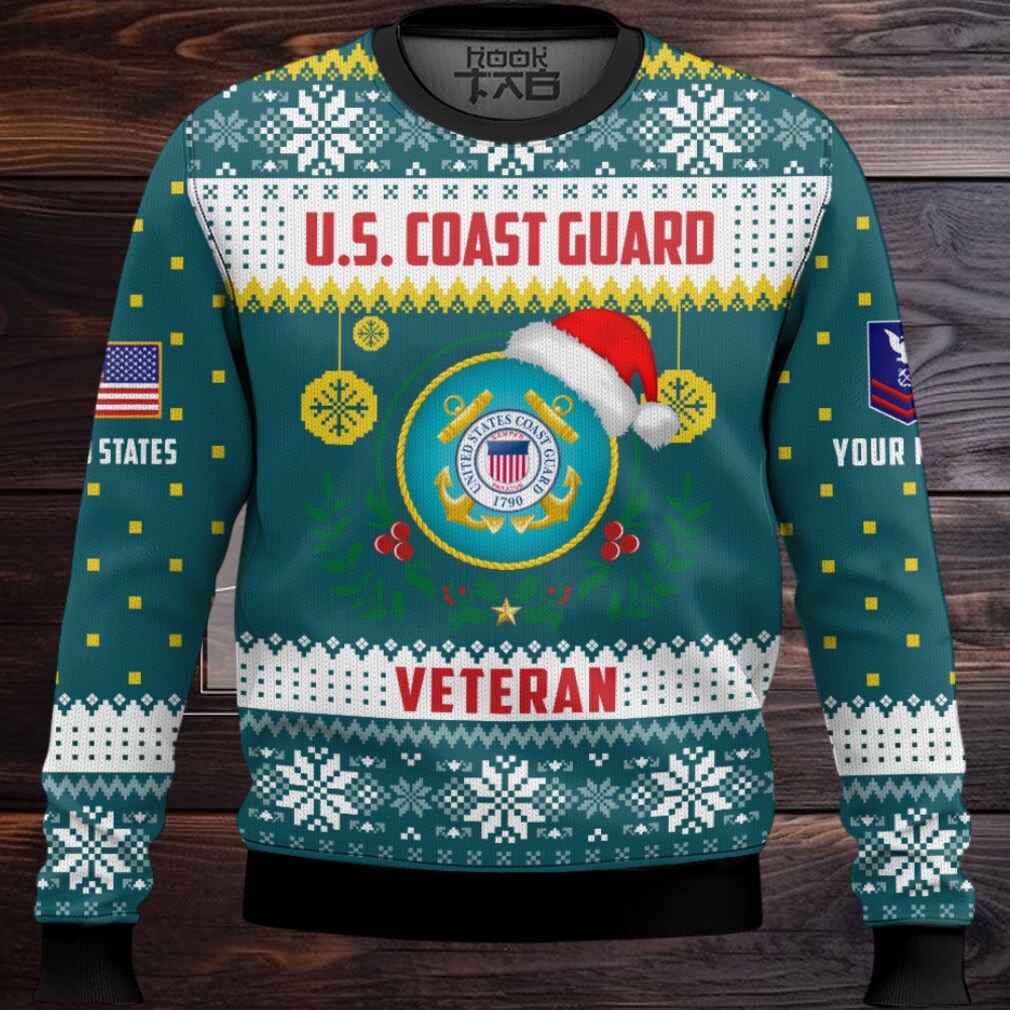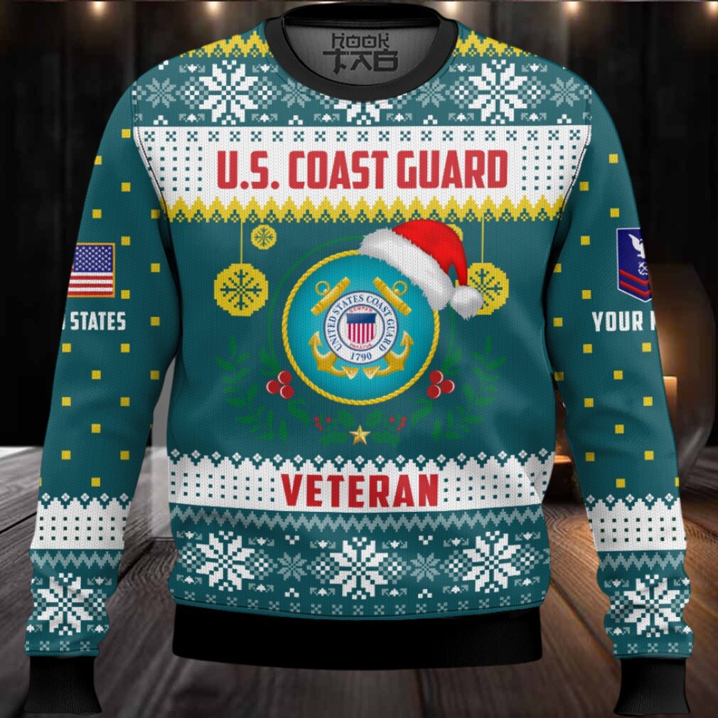 This custom US Coast Guard sweater goes beyond the typical holiday attire. It combines festive cheer with a message that resonates deeply with the veteran community. Picture yourself at a holiday party, wearing this sweater and sparking conversations about understanding and empathy. The personalized details – your name and rank – add a personal touch to this powerful statement piece.