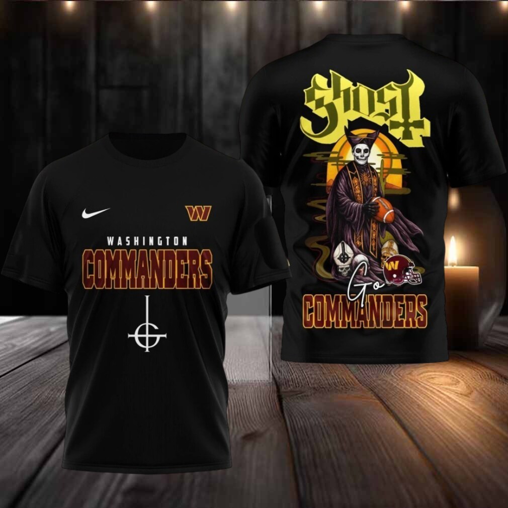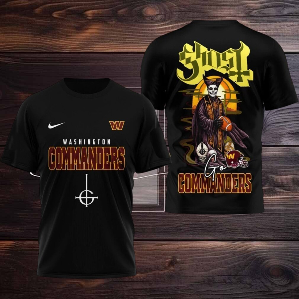 This shirt is ideal for Washington Commanders fans, Ghost enthusiasts, or anyone who loves a mashup of football and rock. Wear it to the stadium, a concert, a tailgate, or any place you want to display your unique style. Makes a great gift for your favorite Commanders and Ghost fan!